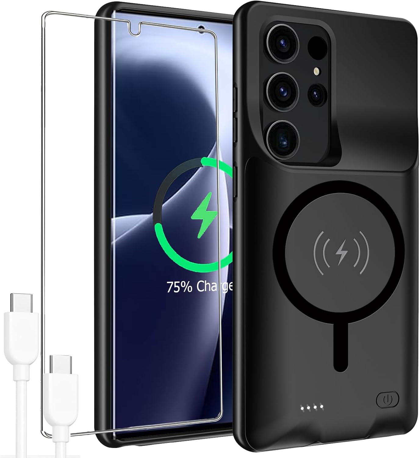 ★★Kindly Note: 1. Full protection to corners and sides, protecting your phone from drops and impacts. Note: not including protect phone screen. 2. Premium battery cells are used to ensure power, safety and reliability. 3. The battery case is only for Samsung Galaxy S24 Ultra(6.8 inches), Other models are not supported. 4. When you connect cable to the battery case with phone installed, your phone will be charged first, after phone full charged, it will charge battery case. 5. This charger case is not waterproof. please use only in dry environments. 6. Smart battery case intelligently stops charging when your phone power is 100%. ★★How to use: 1. Bend the top of the product to completely put the phone into the battery case. 2. Press the power button of the battery case, and it will start charging your Galaxy S24 Ultra. 3. Press the power button again, the charging case will stop charging. ★★Product specifications: 1. Input: 5V/1A 2. Out put: 5V/1A 3. Capacity: 12000mAh 4. Sleek, Low-Profile design; Rechargeable up to 800 times ★★Package Included: 1 x Battery Case for Galaxy S24 Ultra 1 x User Manual1 x charging cable