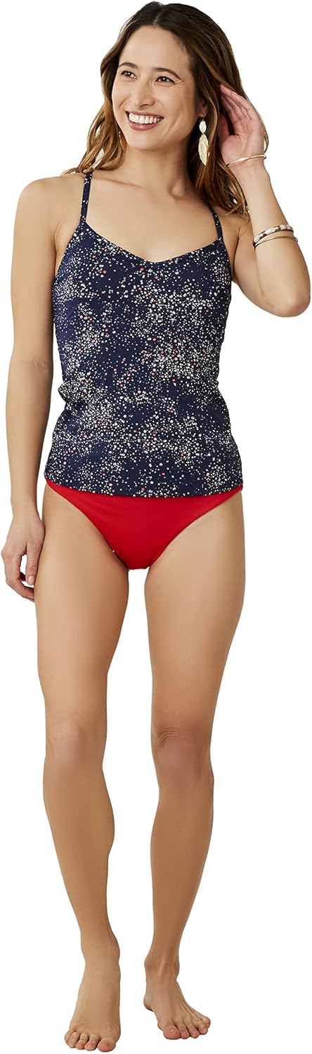 Based on our Stinson Bikini, the long torso of the tankini gives coverage where needed. We recommend this athletic t-back style for high levels of activity.