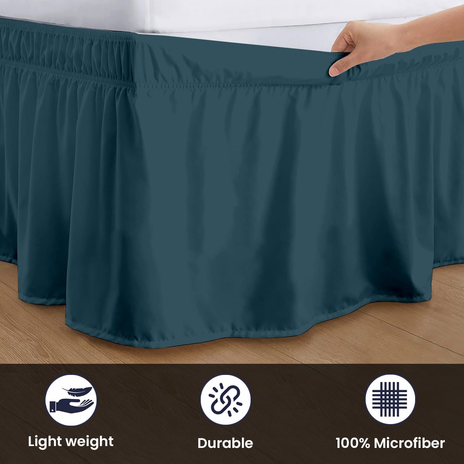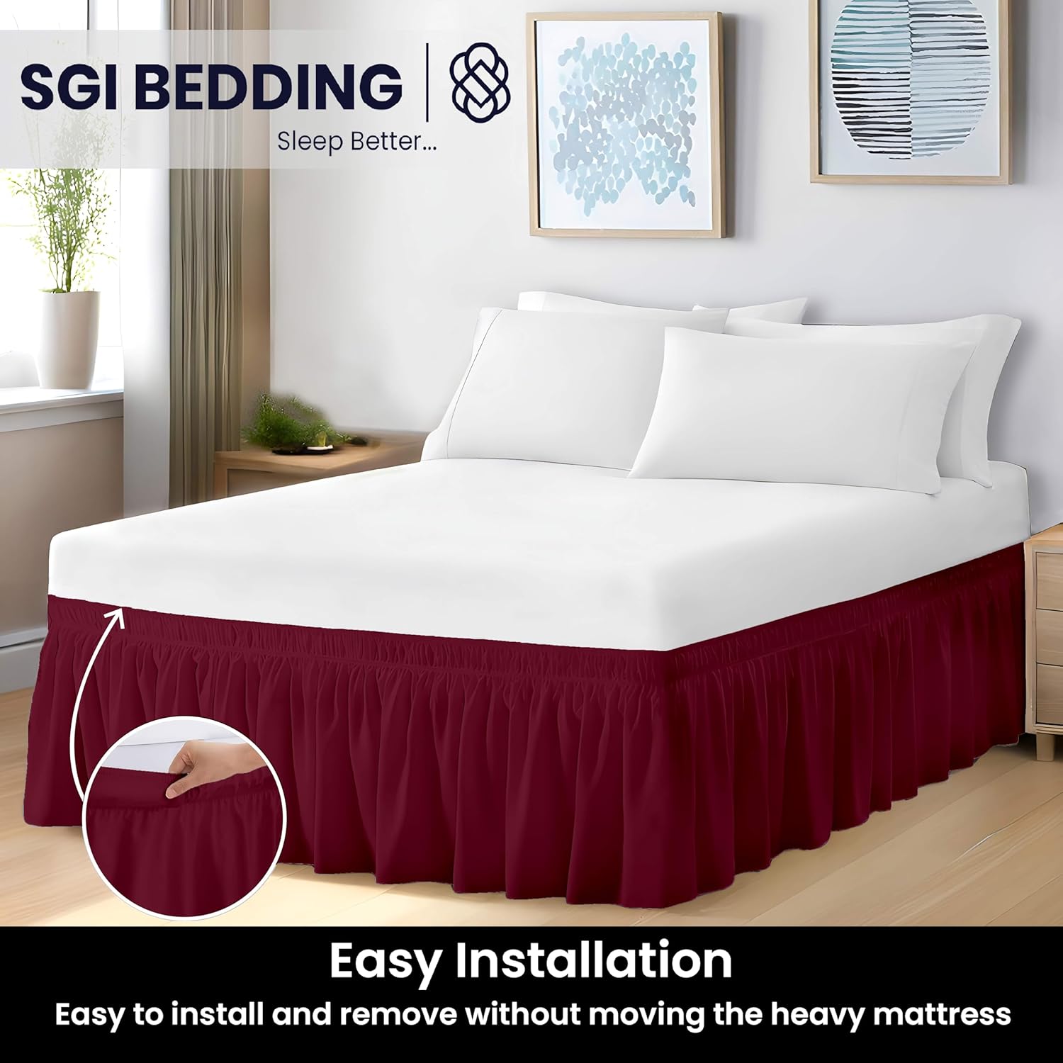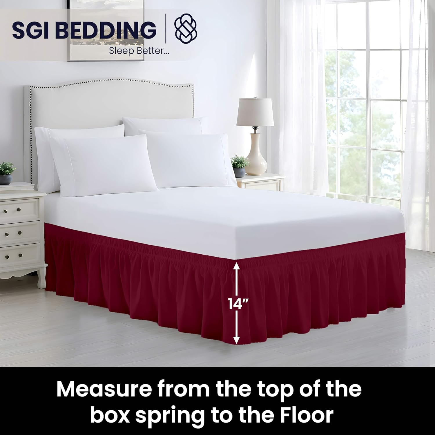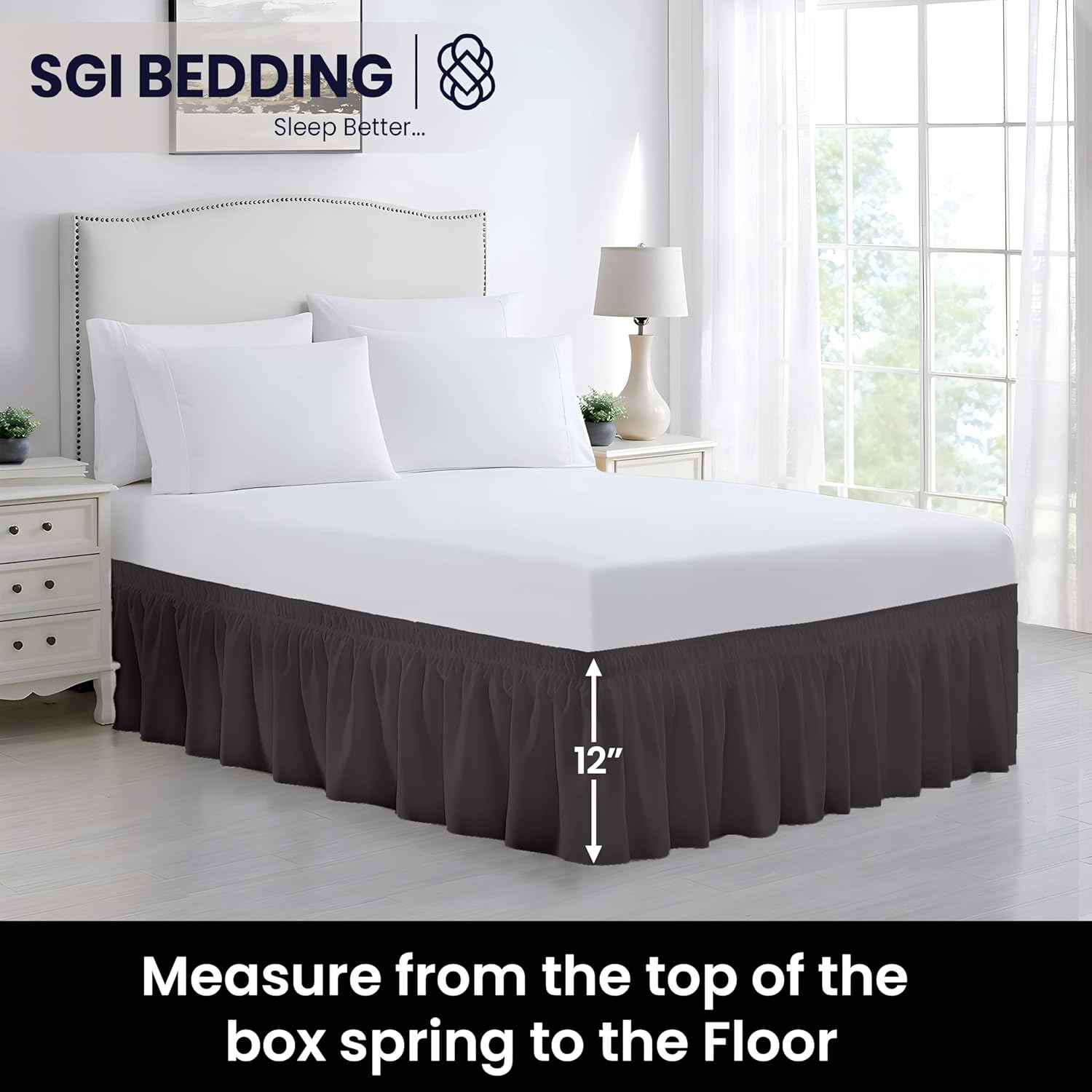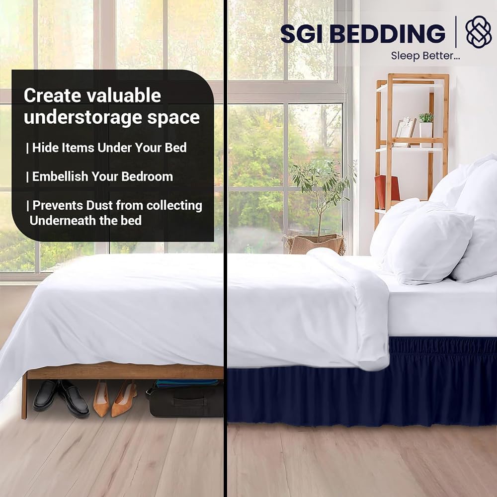 SGI California King Bed Skirt 12 Inch Drop Wrap Around Bed Skirt with Adjustable Elastic Belt- No Heavy Mattress Lifting- Fade-Wrinkle Resistant Bedskirt Sage