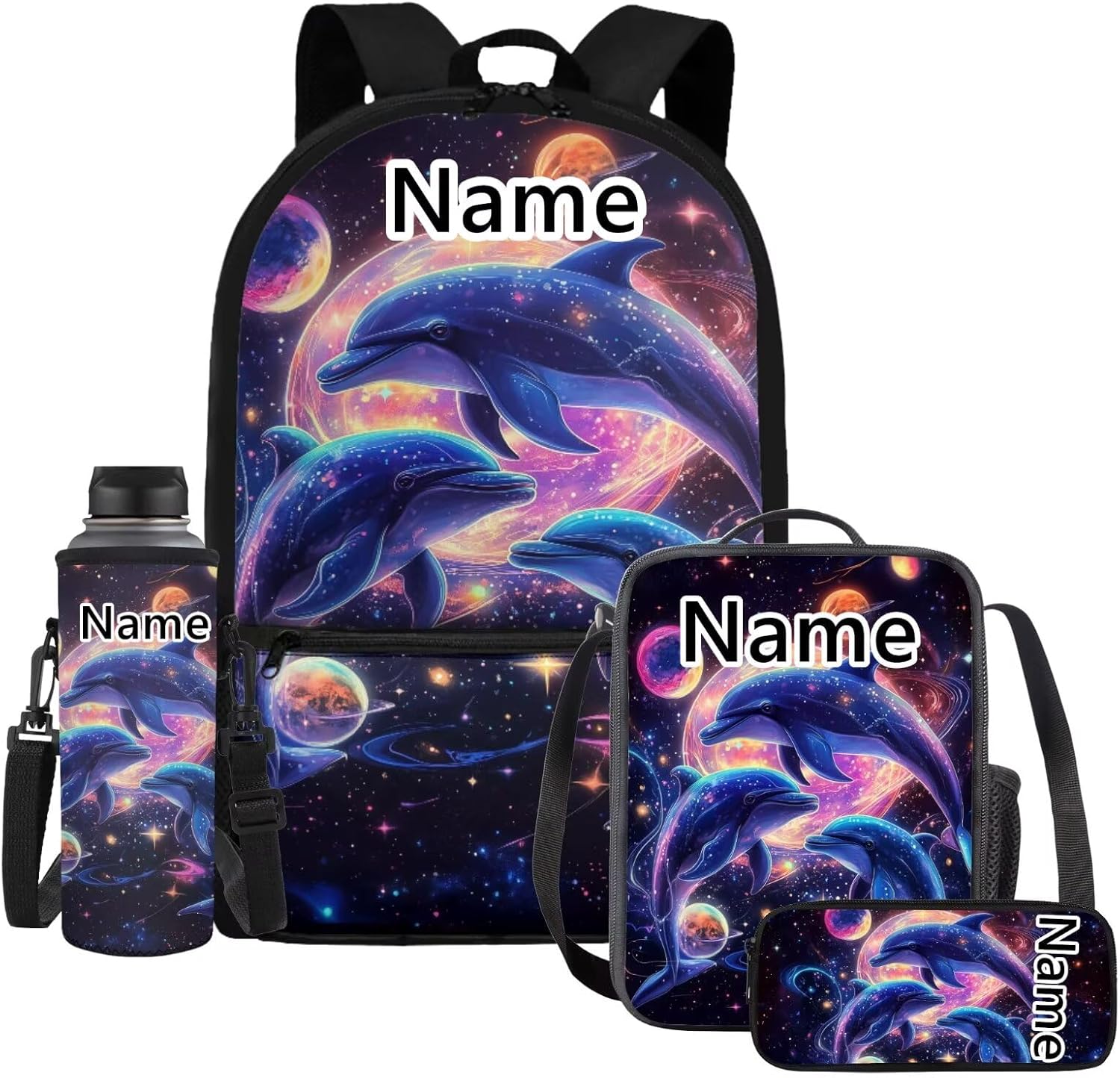 4 in 1 Kids School Backpack Set Package include: 1 kids backpack, 1 insulated lunch bag, 1 pencil case, and 1 water bottle holder Size Chart Kids Backpack: 11 x 5.1 x 17.3 inches(L*W*H); Lunch Bag: 7 x 2.7 x 9 inches(L*W*H); Pencil Case:8.2 x 1.5 x 3.9 inches; Water Bottle Sleeve: 9.5*10.24 inches Ideal Gift Perfect gift for your grandson, granddaughter, son or daughter on birthday, back to school season, Children’s Day and other important occasions